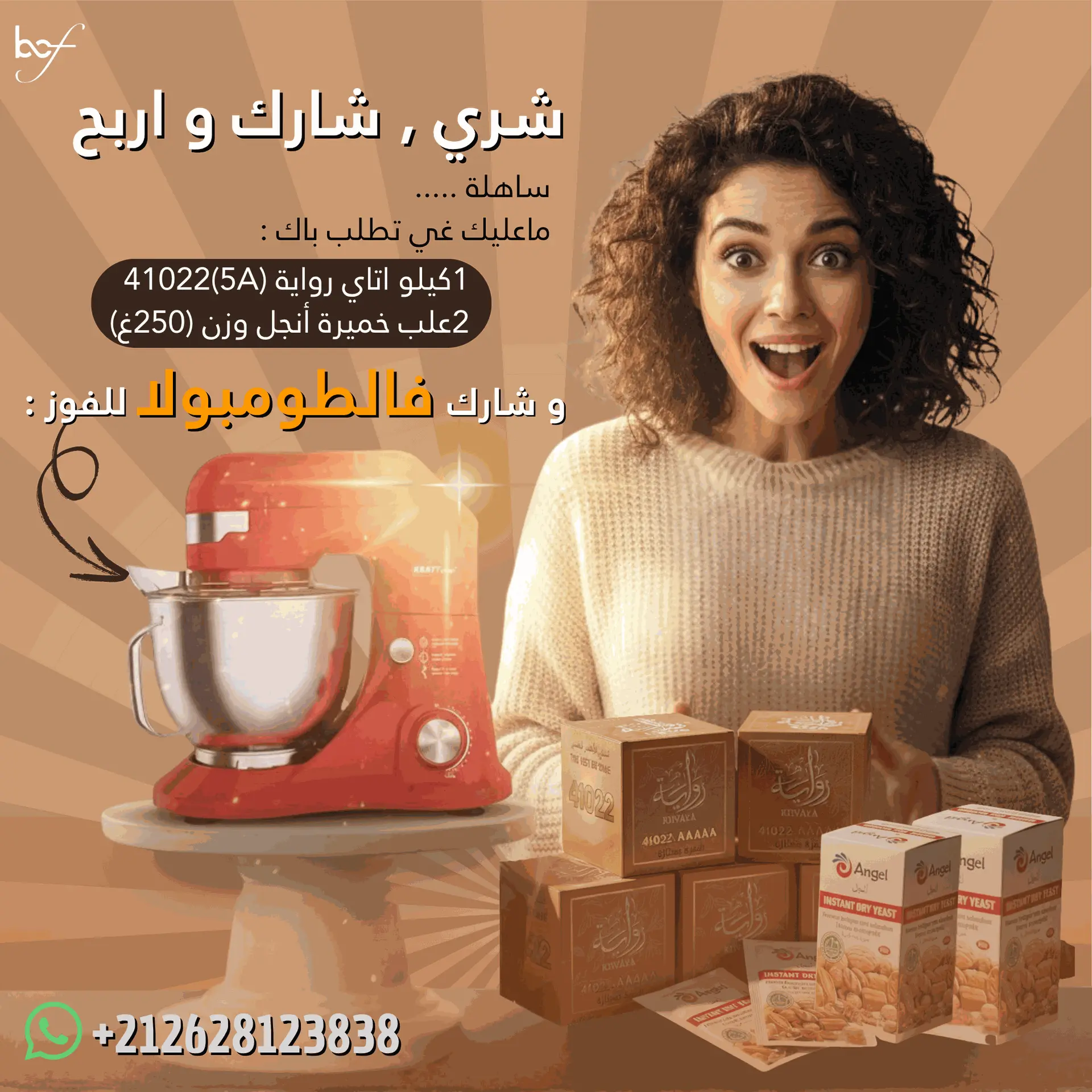 شارك فالتحدي ديالنا وربح آلة العجن Karft YM‑611 بقدرة 1500W وسعة 5 لتر. كل عملية شراء من الباك كتقربك من الجائزة.